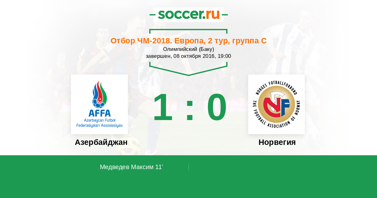 Протокол матча Азербайджан против Норвегия