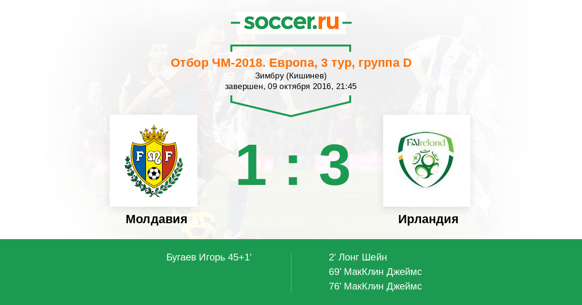 Протокол матча Молдавия против Ирландия
