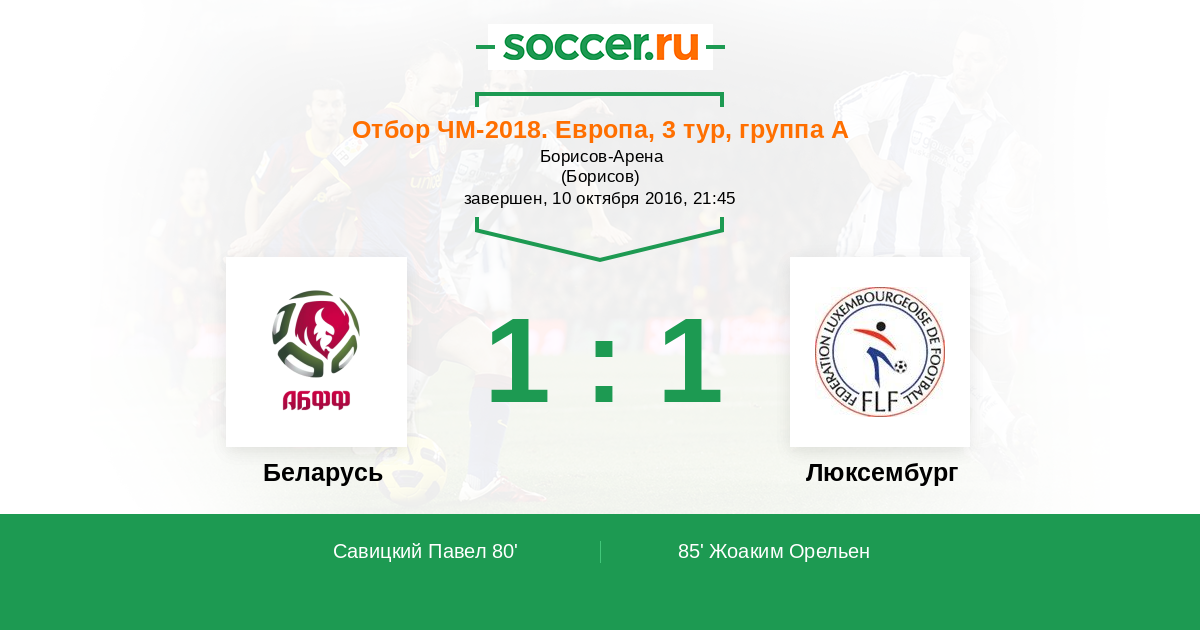 Протокол матча Беларусь против Люксембург