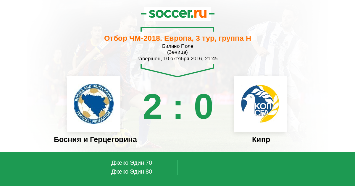 Протокол матча Босния и Герцеговина против Кипр