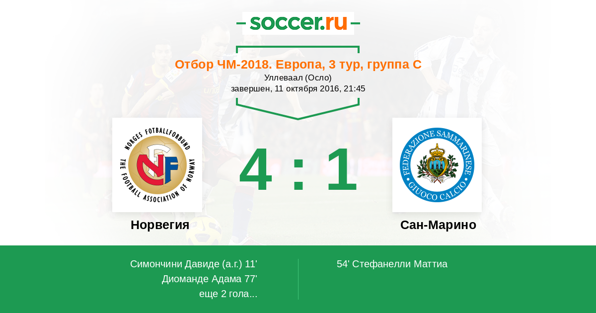 Протокол матча Норвегия против Сан-Марино