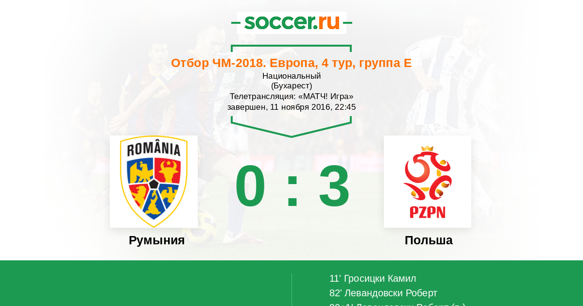 11' (0:1) Гросицки Камил (11) (Енджейчик Артур (3))