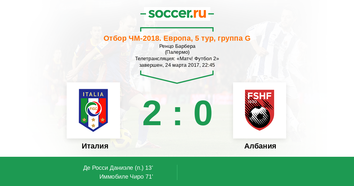 71' (2:0) Иммобиле Чиро (11) (Дзаппакоста Давиде (22))