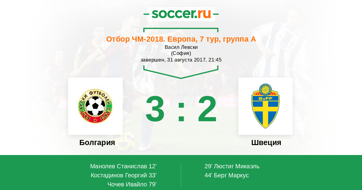 Протокол матча Болгария против Швеция