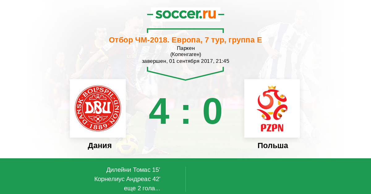79' (4:0) Эриксен Кристиан (10) (Ларсен Йенс (17))