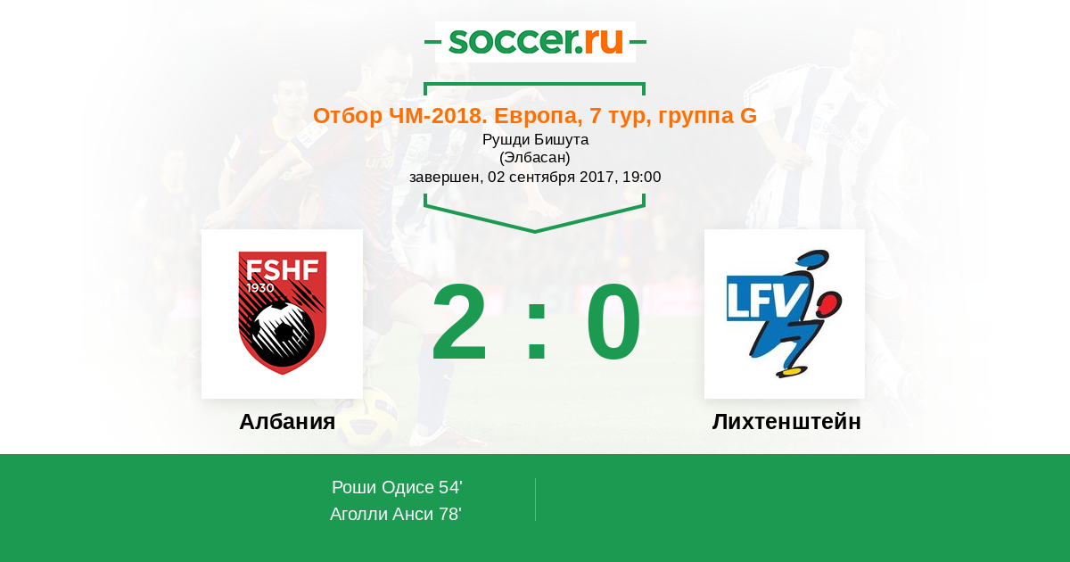 Протокол матча Албания против Лихтенштейн