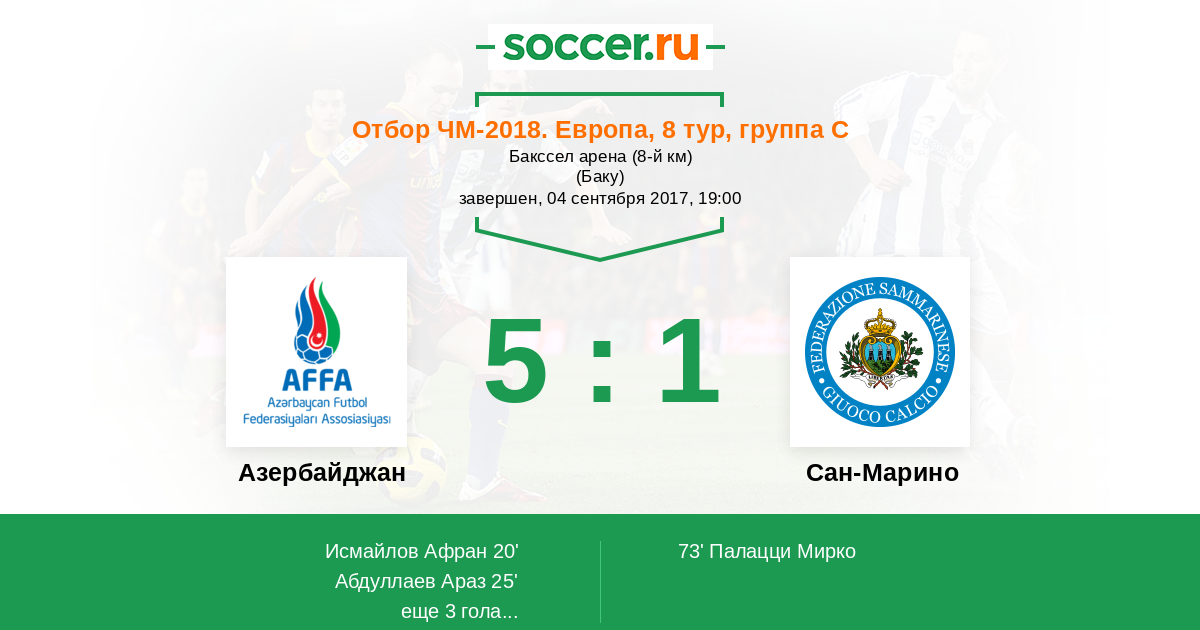Протокол матча Азербайджан против Сан-Марино