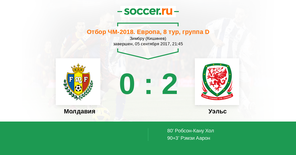 Протокол матча Молдавия против Уэльс