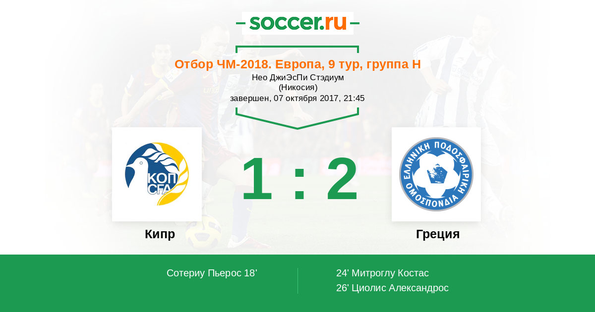 Протокол матча Кипр против Греция