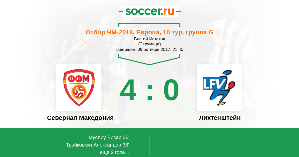 38' (2:0) Трайковски Александар (9) (Пандев Горан (10))