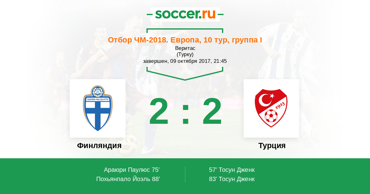 88' (2:2) Похьянпало Йоэль (20) (Соири Пири (13))