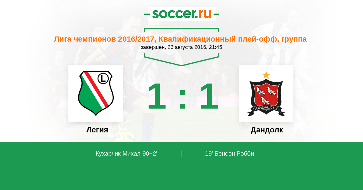 Протокол матча Легия против Дандолк