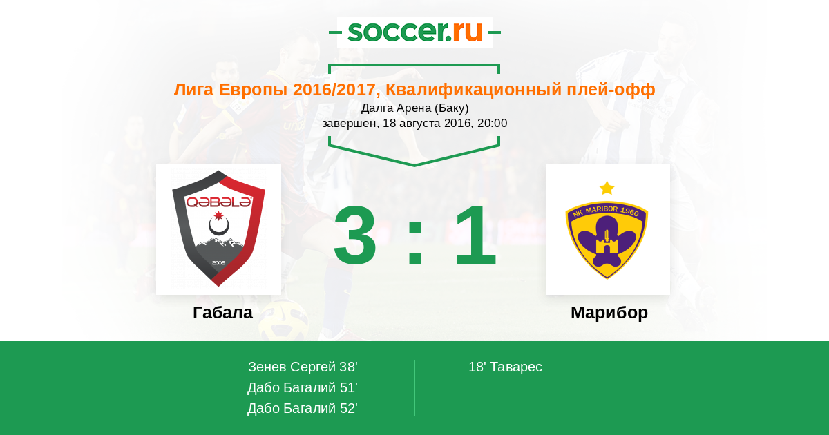 Протокол матча Габала против Марибор