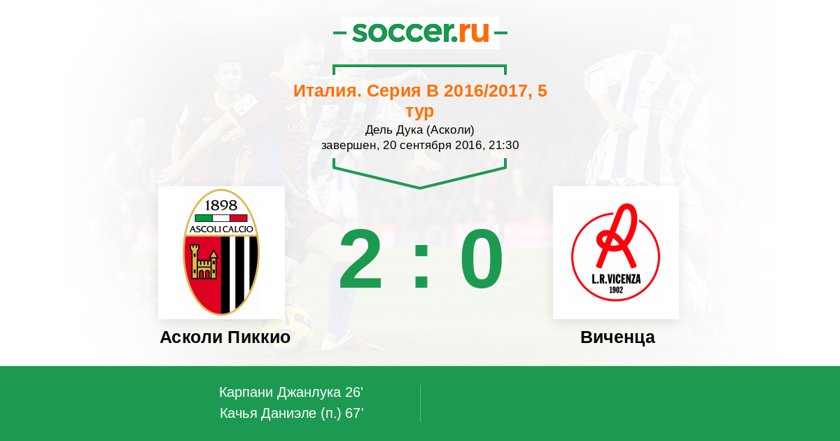 Протокол матча Асколи Пиккио против Виченца