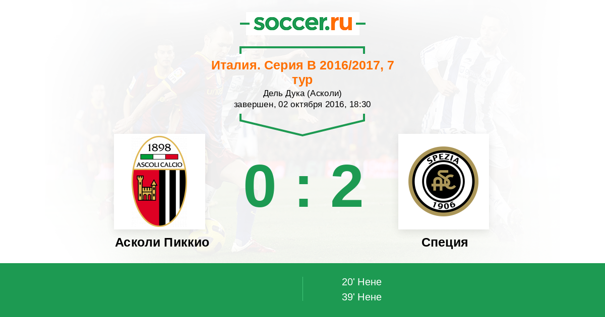 Протокол матча Асколи Пиккио против Специя