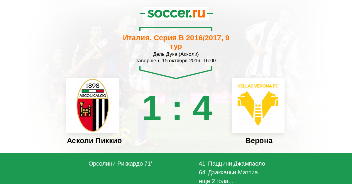 Протокол матча Асколи Пиккио против Верона