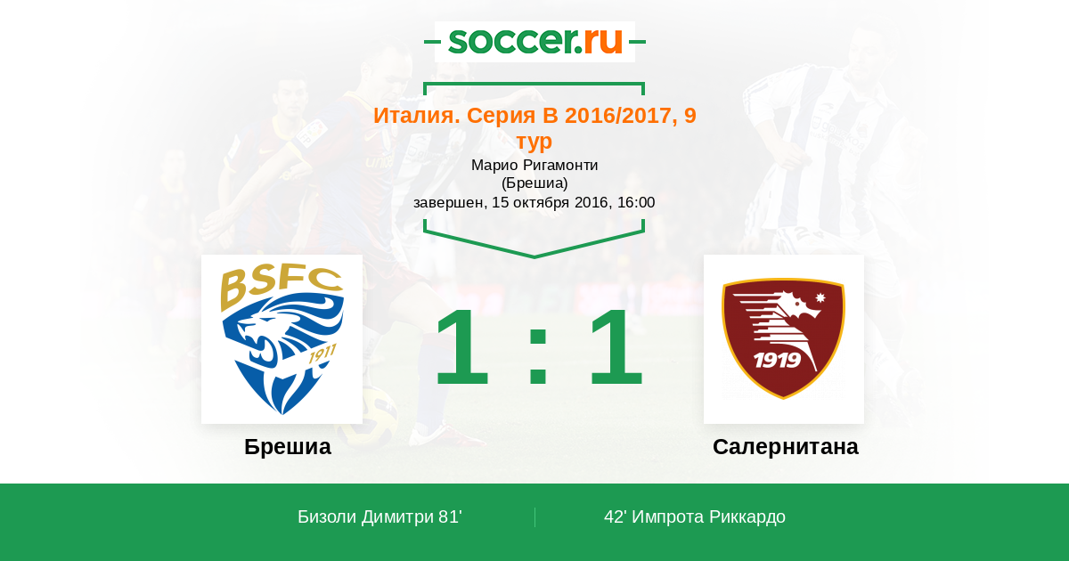 Протокол матча Брешиа против Салернитана