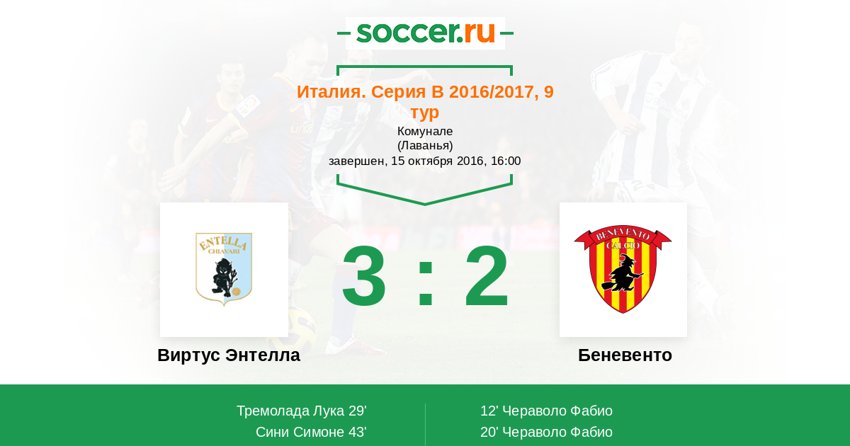 Протокол матча Виртус Энтелла против Беневенто
