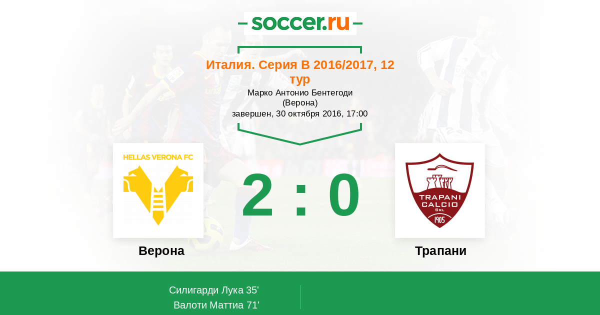 Протокол матча Верона против Трапани