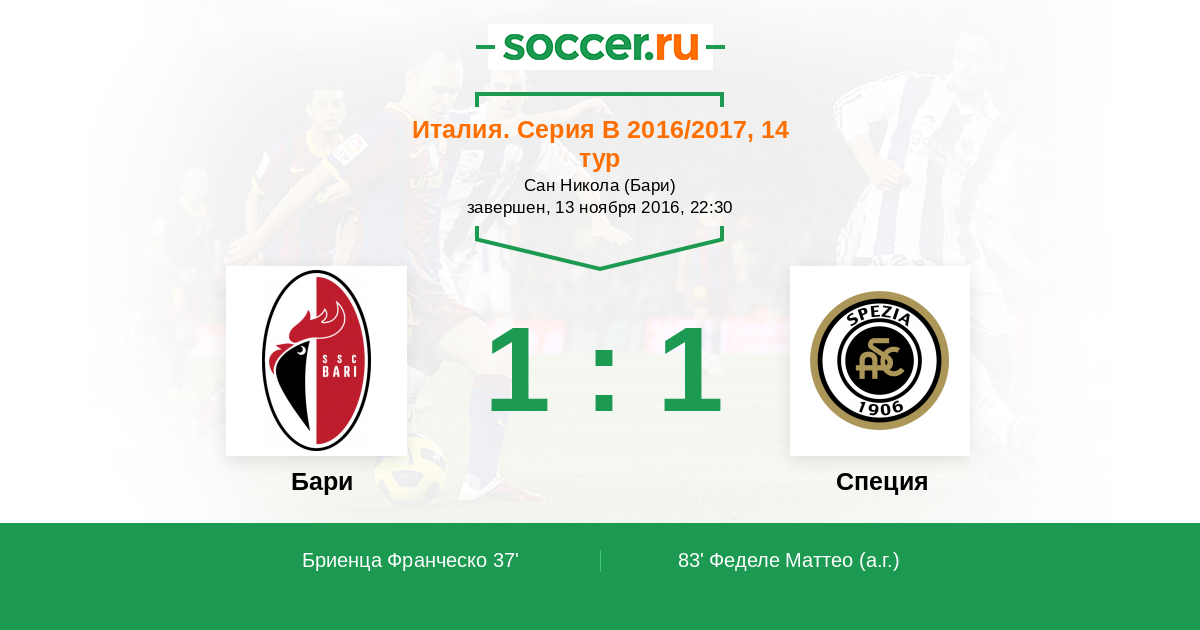 37' (1:0) Бриенца Франческо (20) (Де Лука Джузеппе (10))