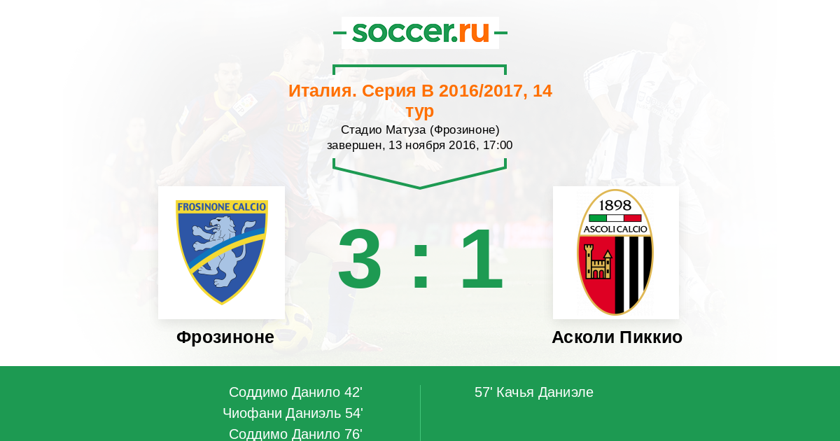 Протокол матча Фрозиноне против Асколи Пиккио