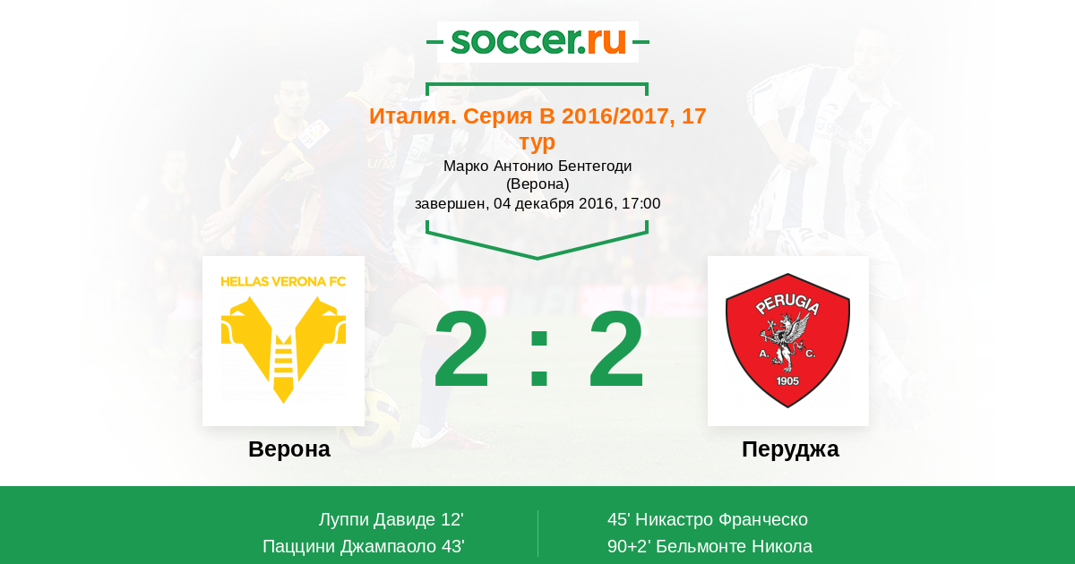 90+2' (2:2) Бельмонте Никола (17) (Ди Кьяра Джанлука (27))