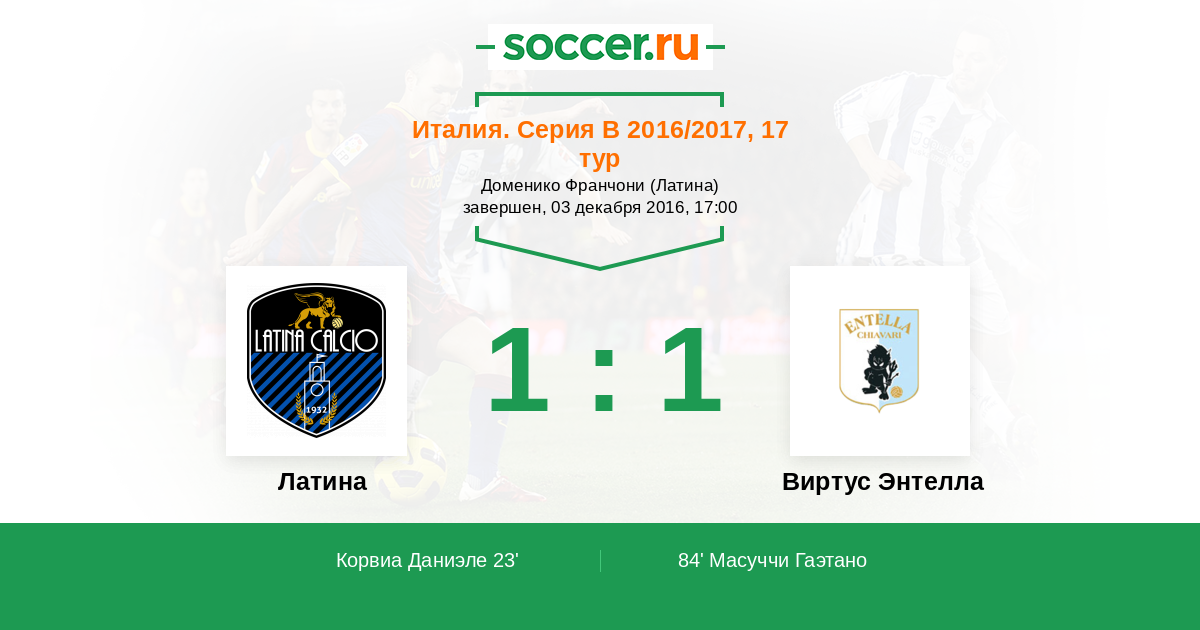 84' (1:1) Масуччи Гаэтано (26) (Тремолада Лука (14))
