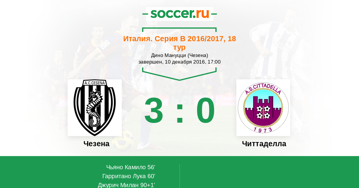 Протокол матча Чезена против Читтаделла