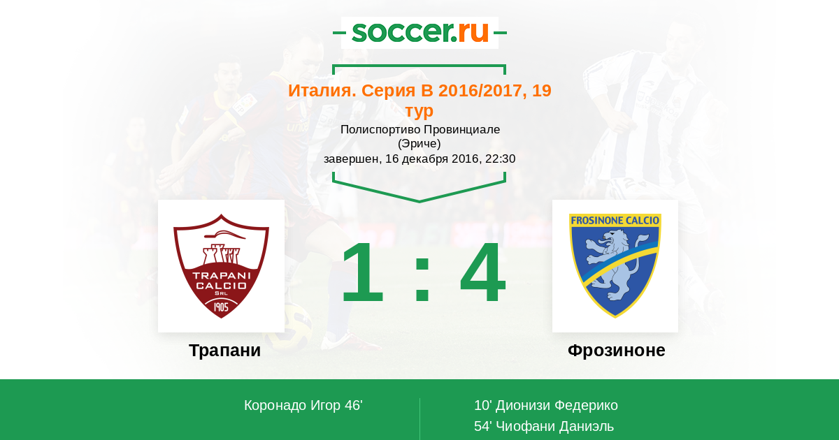 Протокол матча Трапани против Фрозиноне