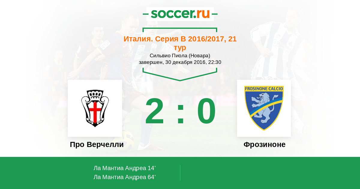64' (2:0) Ла Мантиа Андреа (10) (Маммарелла Карло (33))
