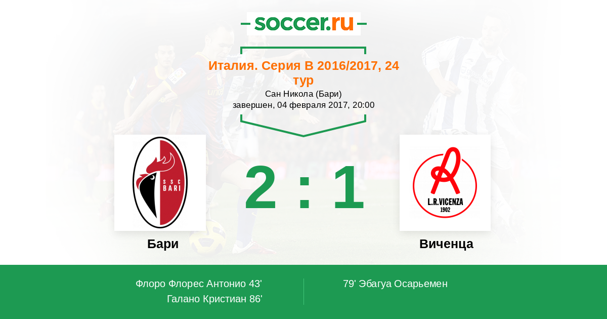 Протокол матча Бари против Виченца