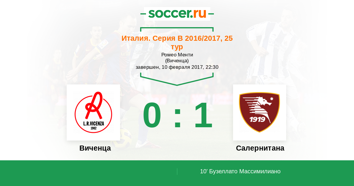 10' (0:1) Бузеллато Массимилиано (8) (Минала Джозеф (17))
