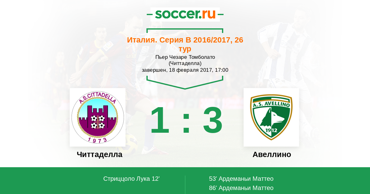 Протокол матча Читтаделла против Авеллино