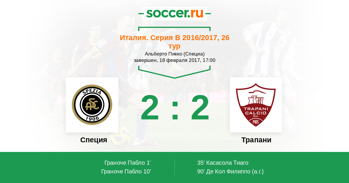 Протокол матча Специя против Трапани