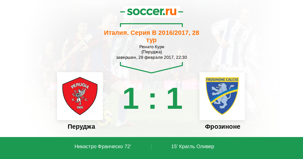 Протокол матча Перуджа против Фрозиноне