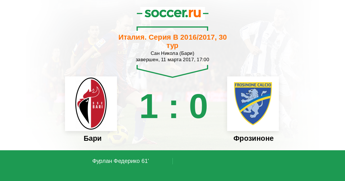 Протокол матча Бари против Фрозиноне