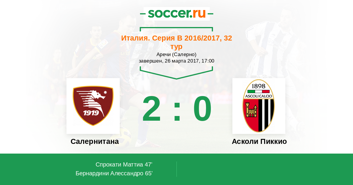 Протокол матча Салернитана против Асколи Пиккио
