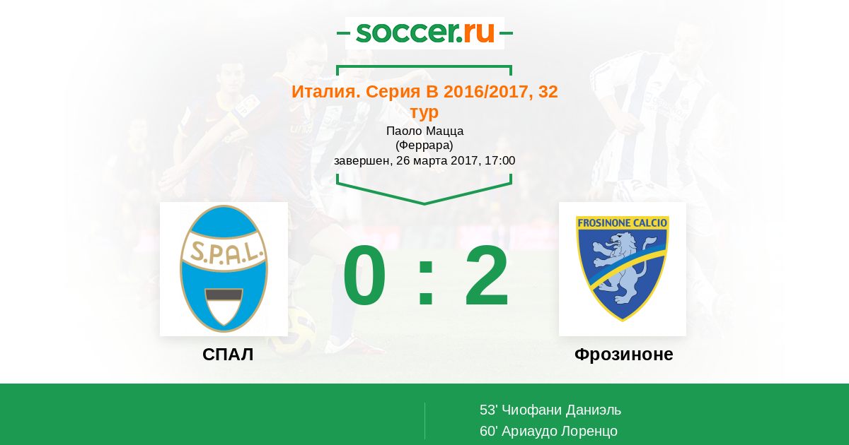 53' (0:1) Чиофани Даниэль (9) (Фьямоцци Риккардо (29))