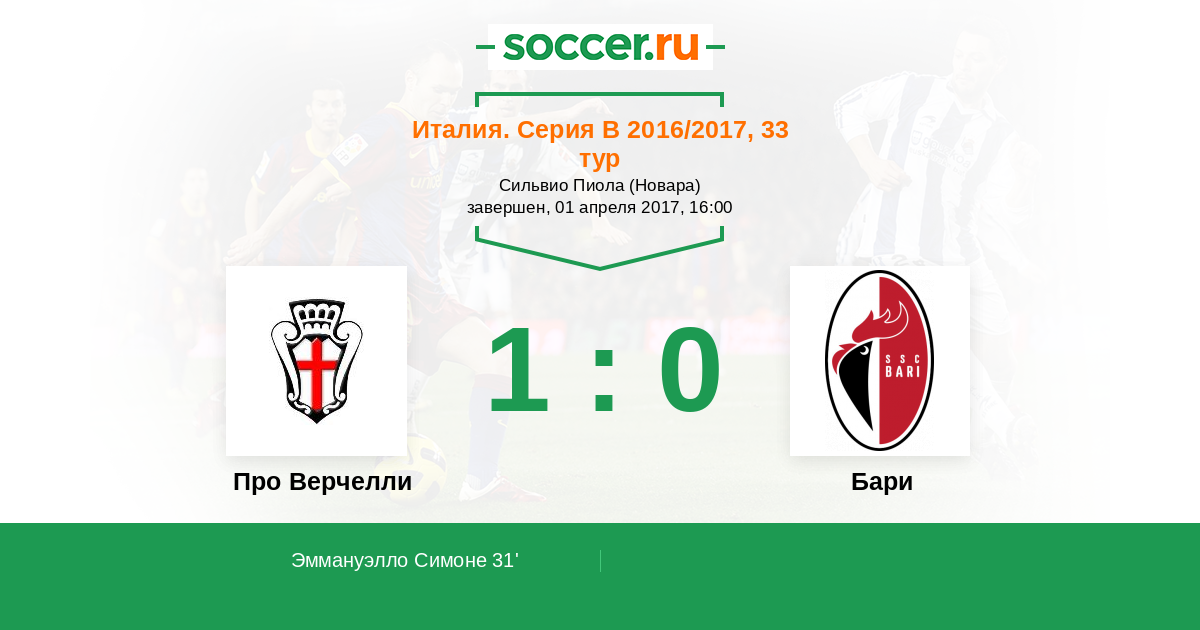 31' (1:0) Эммануэлло Симоне (20) (Палацци Андреа (8))