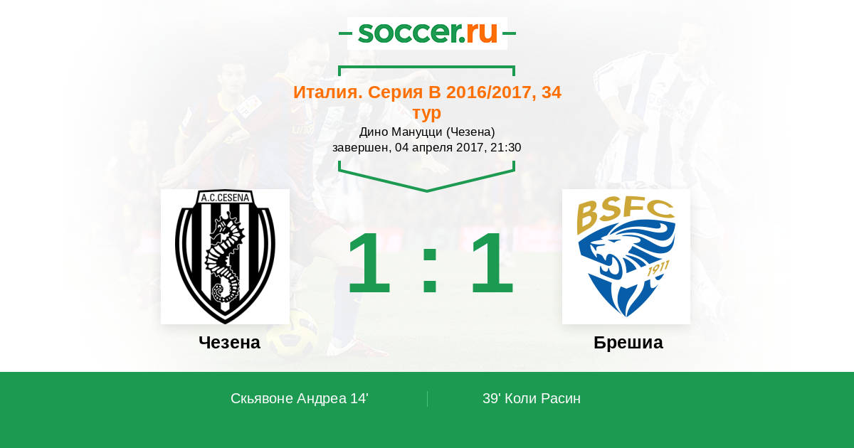 Протокол матча Чезена против Брешиа
