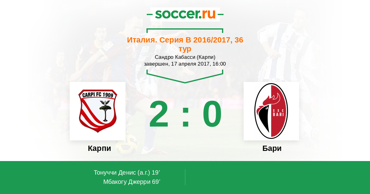 Протокол матча Карпи против Бари