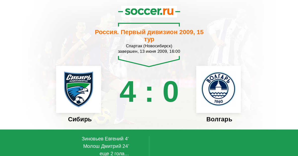 Протокол матча Сибирь против Волгарь-Газпром-2