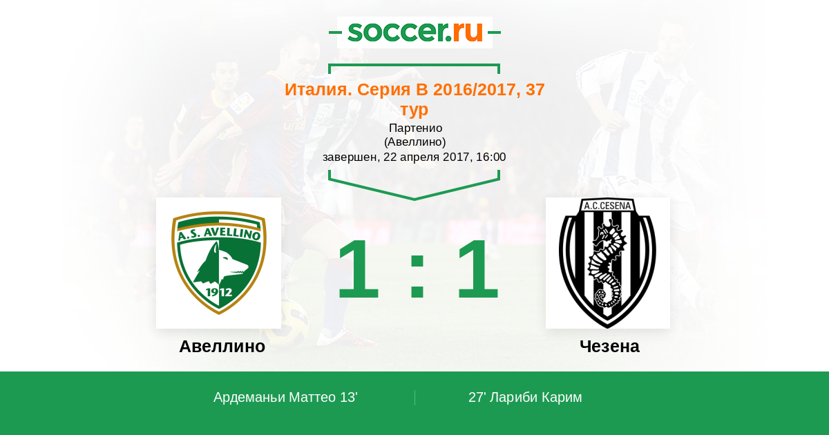 Протокол матча Авеллино против Чезена