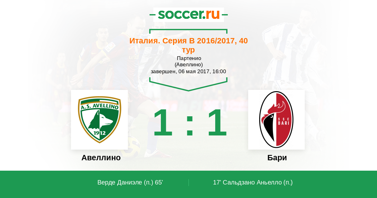 Протокол матча Авеллино против Бари