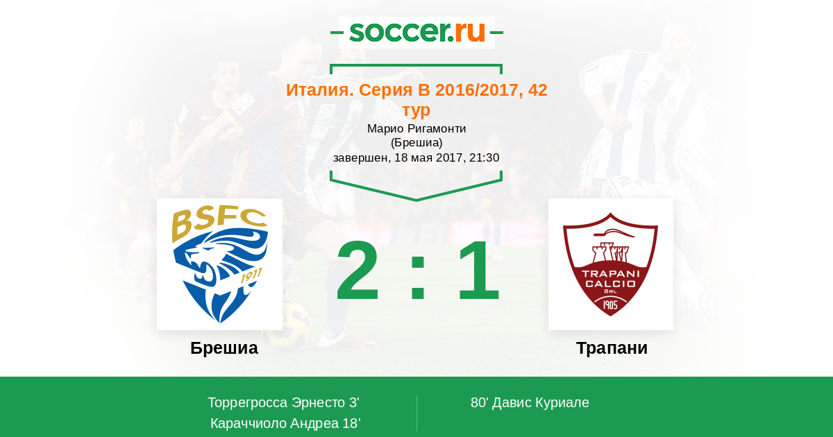 Протокол матча Брешиа против Трапани