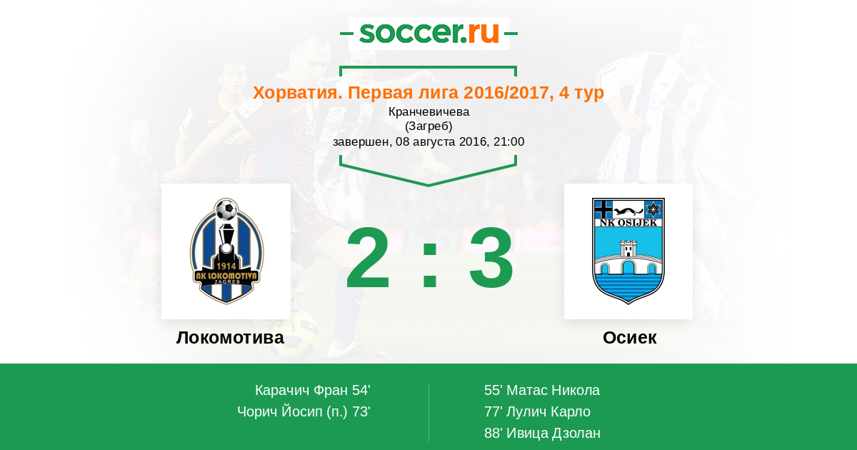Протокол матча Локомотива против Осиек