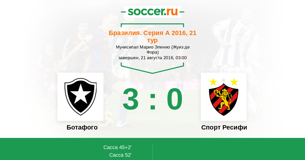 Протокол матча Ботафого против Спорт Ресифи