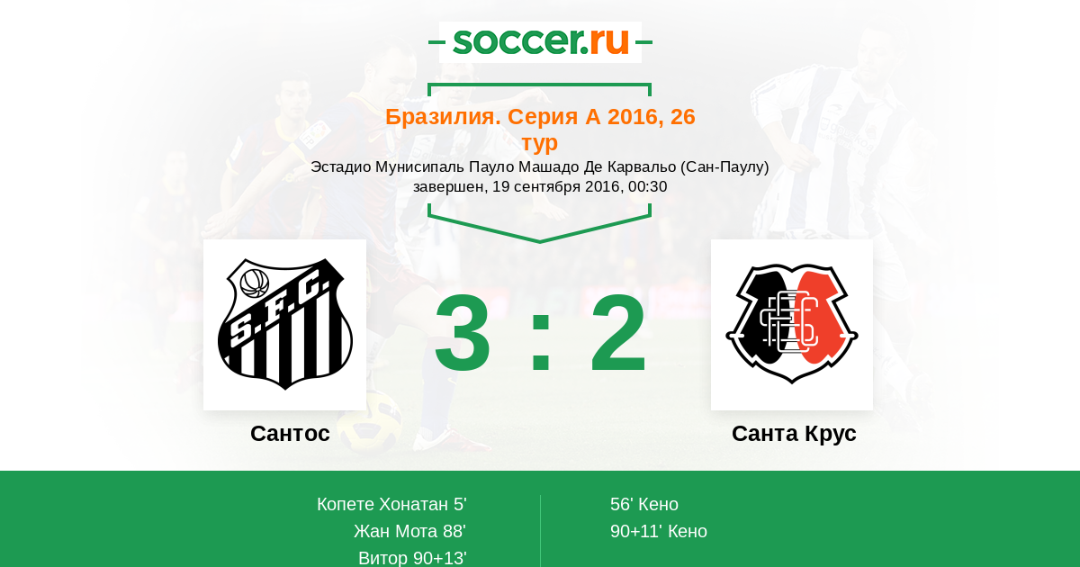 Протокол матча Сантос против Санта Крус