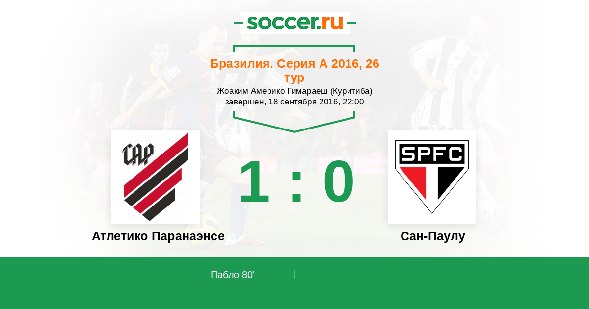 Протокол матча Атлетико Паранаэнсе против Сан-Паулу