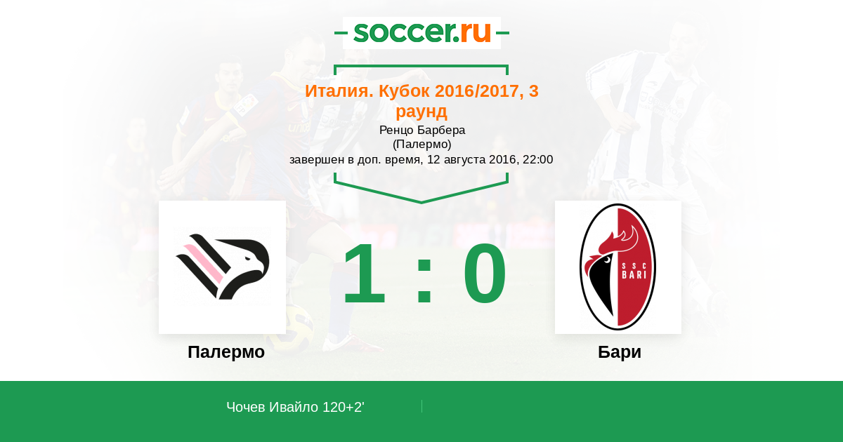 Протокол матча Палермо против Бари
